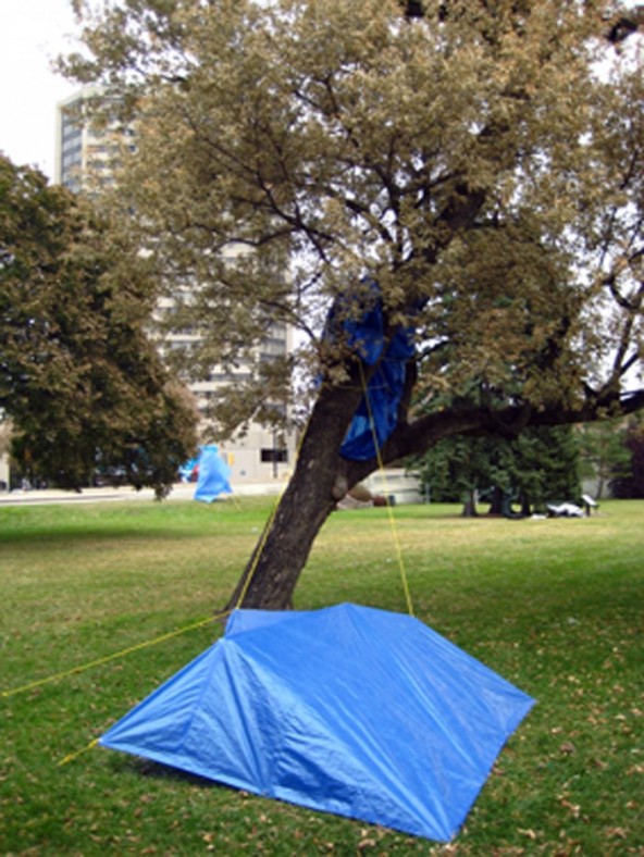 keywords. nomadic dwellings tarps blue homeless urban intervention shelter