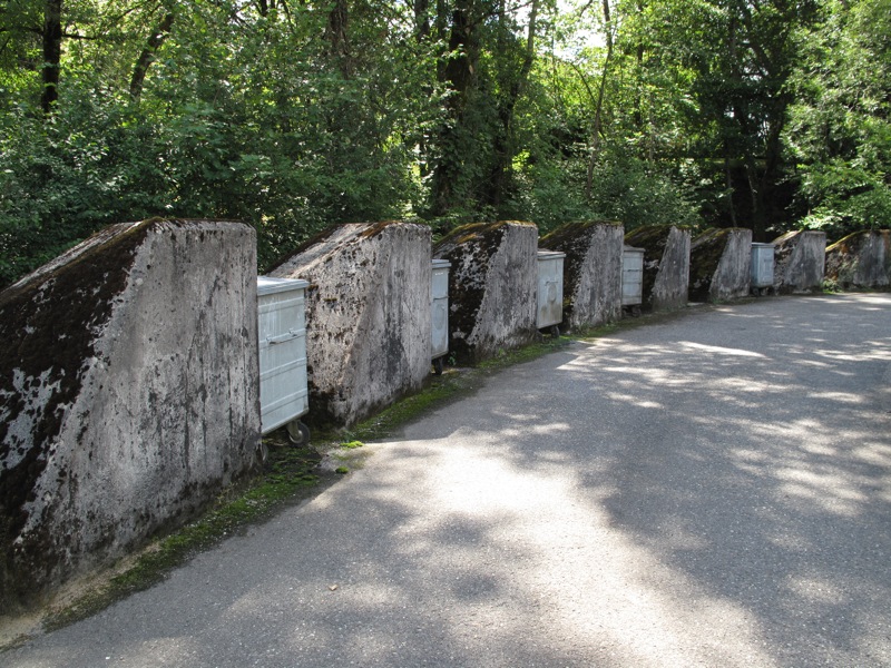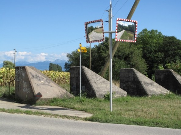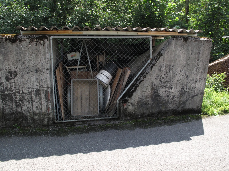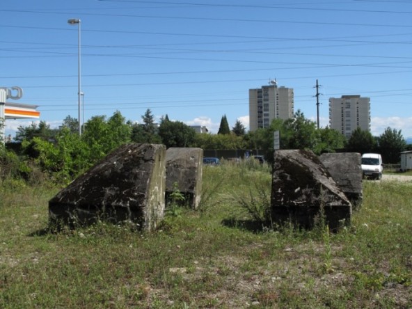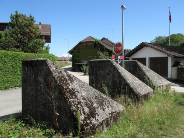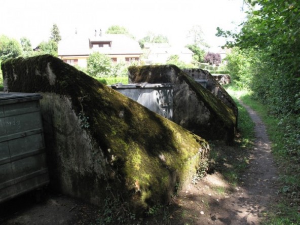 The Sentier des Toblerones was a 17-kilometer long line of defensive fortification developed in 1941. These war monuments, all casted in heavy blocks of concrete, now have become part of the landscape. Woodshed and DIY hangars have been built into the spaces in between the concrete blocks.